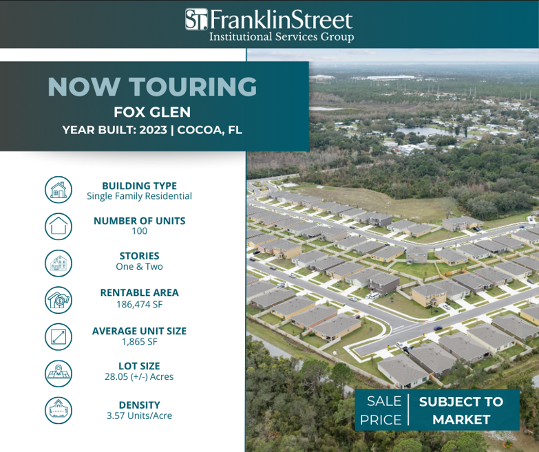 Fox Glen is a newly built single-family residential community, completed in 2023, offering 100 thoughtfully designed single family homes spread across a 28.05-acres. With a combination of one and two-story homes, offering three, four and five-bedroom floor plans. The development spans a total rentable area of 186,474 square feet, with each home averaging 1,865 square feet in size, providing spacious living in a serene environment.