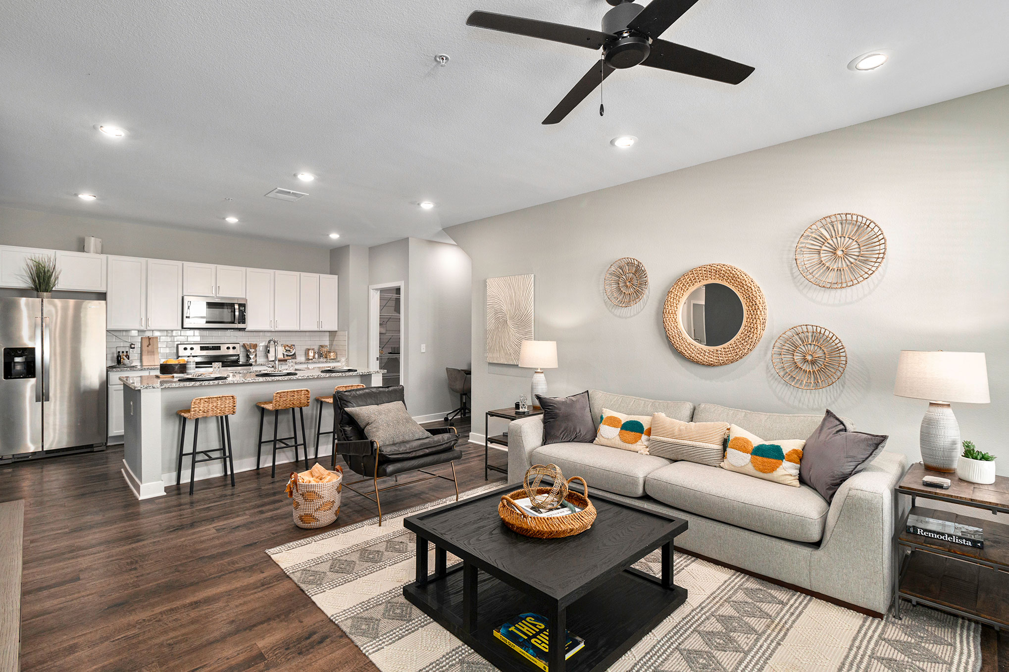 This brand-new, luxury multifamily community is built with contemporary designed floor plans and designer finishes, featuring modern lighting, stainless steel appliances, a resort-style swimming pool and spa with a sundeck, cabanas, an outdoor kitchen, pickleball courts and fowling game area, state-of-the-art fitness center, resident lounge with Wi-Fi, barbecue and grilling area, and a full size washer and dryer.