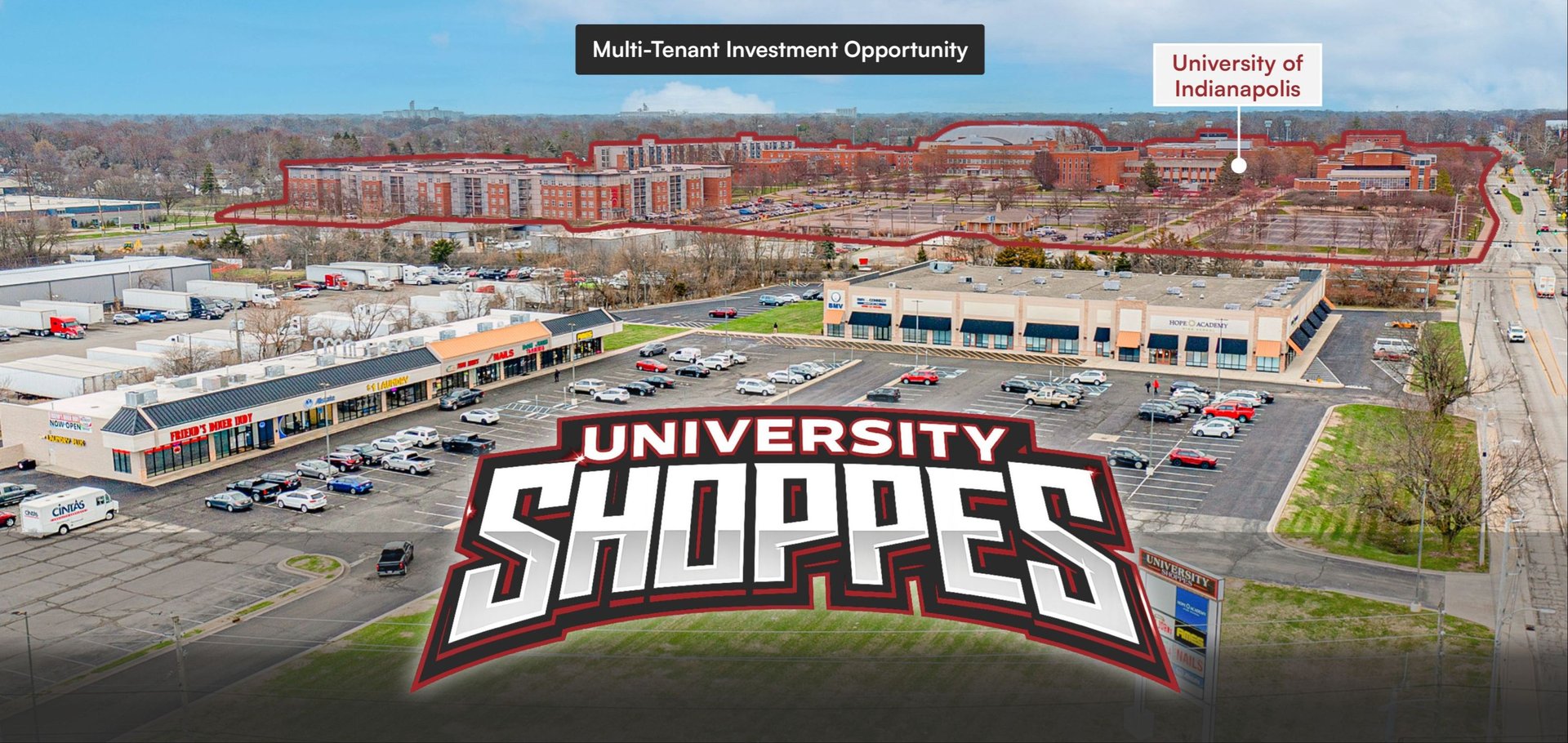 Occupied by two service-oriented tenants - Indiana Bureau of Motor Vehicles and Hope Academy High School – on long-term leases, University Shoppes provides an ideal investment opportunity for investors seeking a passive ownership scenario with built-in NOI growth.