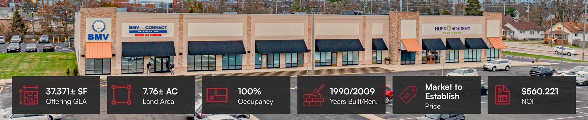 Occupied by Hope Academy and the Indiana Bureau of Motor Vehicles with 7 years of avg. remaining lease term