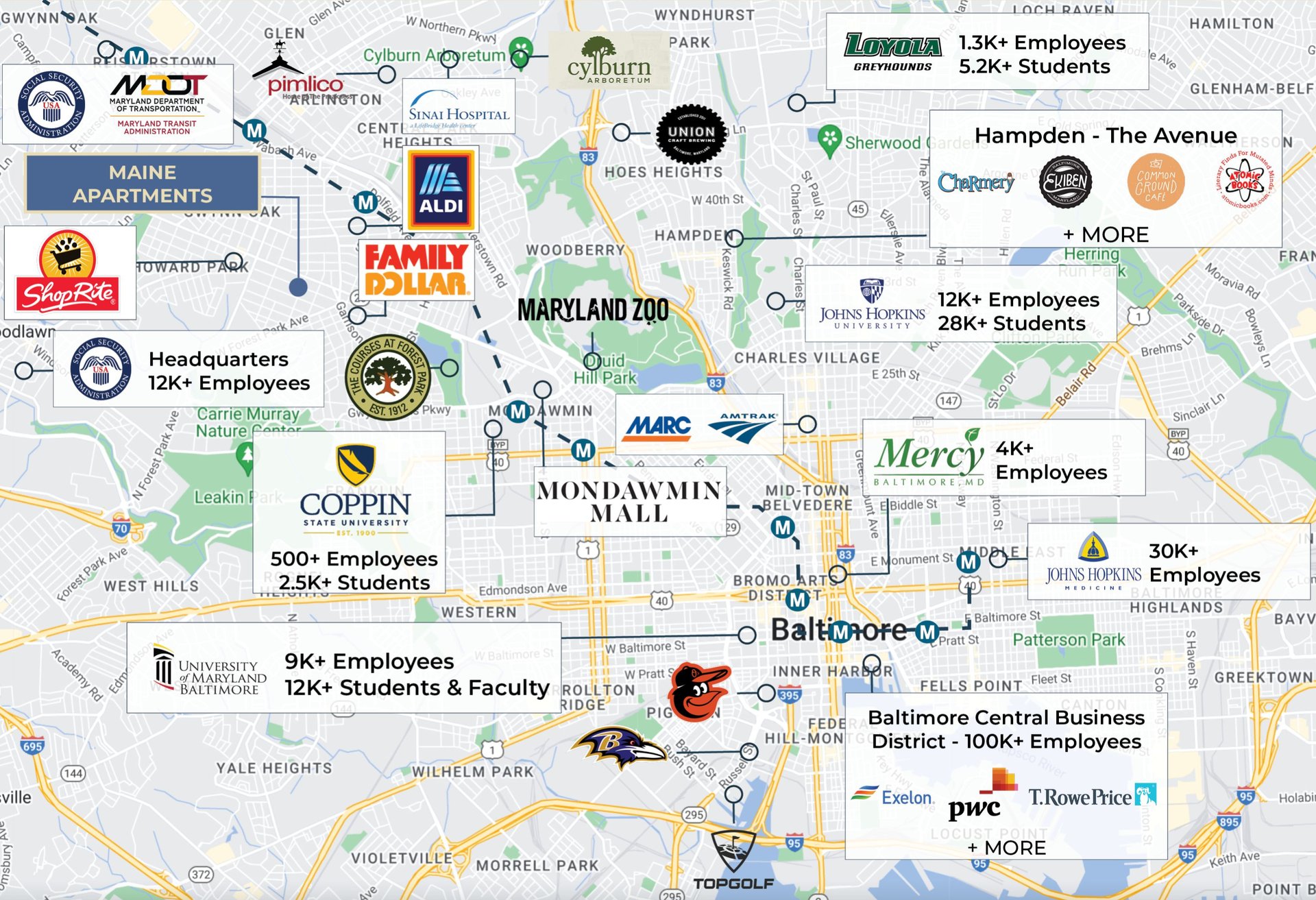 • Major area employers nearby: Coppin State University, Sinai Hospital, Baltimore City Community College